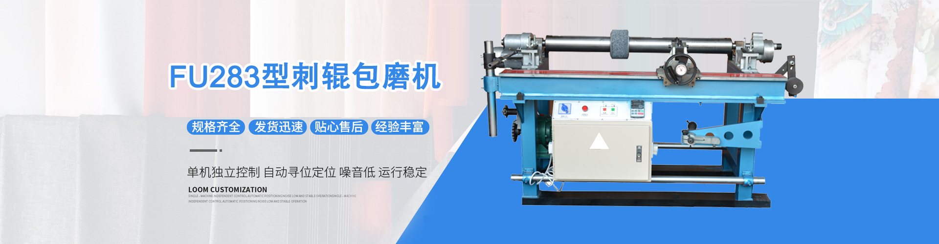 目前生產(chǎn)的新型皮輥房輔機、梳棉輔機、理管機、粗紗頭開松機、錠子加油機、絨輥清潔機及紡織安裝專用工具等系列產(chǎn)品